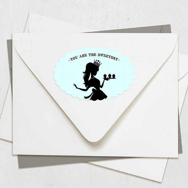 20 stickers included in a set. Perfect for adding "that little something" extra to your event. Stickers can be placed on favor bags, envelopes, napkins rings, and much much more! Each scallop oval sticker measures 3" x 2".