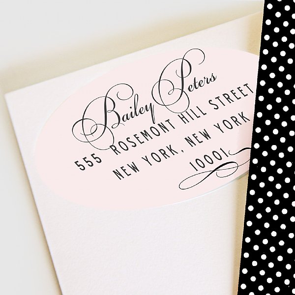 Address labels are oval shaped, and measure 2.5" x 1.375".