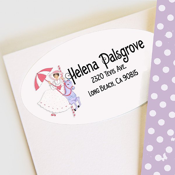 Address labels are oval shaped, and measure 2.5" x 1.375". Twenty one address labels come in a set.