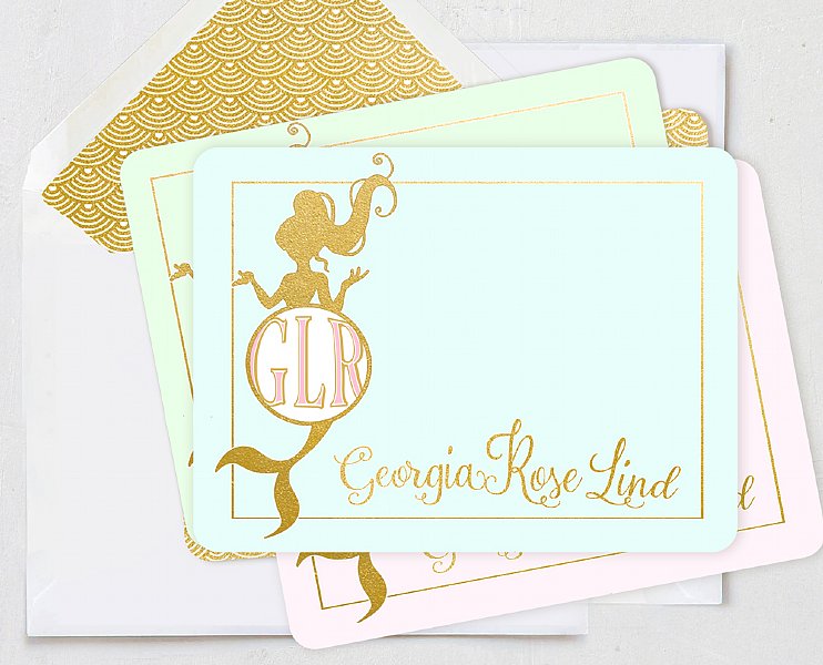 Double-sided monogram stationery with coordinating lined envelopes.  Each card is professionally die cut and measures approximately 4.25" x 5.5". Printed on heavy 130lb. cardstock.  Please choose your quantity below!