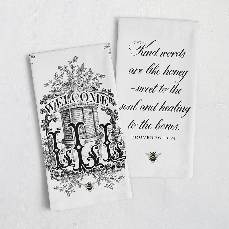 Tea Towel measures approximately 18" x 30". The material is a 100% cotton twill and printed with ecologically-friendly Ultra-color technology. Tea towels are wash-fast for easy launder.