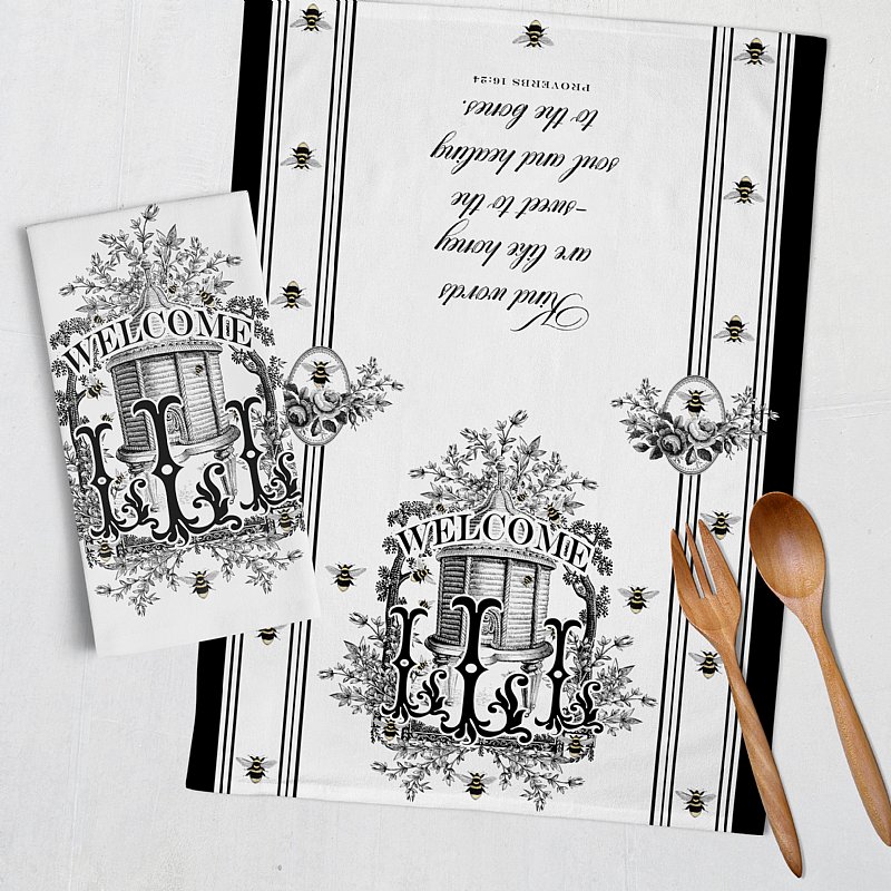 Tea Towel measures approximately 18" x 30".  The material is a 100% cotton twill and printed with ecologically-friendly Ultra-color technology.  Tea towels are wash-fast for easy launder.
