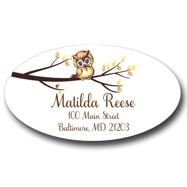 Address labels are oval shaped, and measure 2.5" x 1.375". Twenty one address labels come in a set.