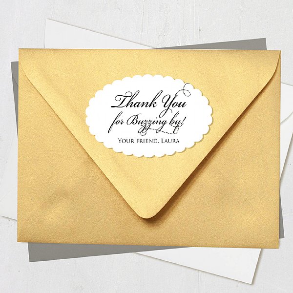 20 stickers included in a set. Perfect for adding "that little something" extra to your event. Stickers can be placed on favor bags, envelopes, napkins rings, and much much more! Each scallop oval sticker measures 3" x 2".