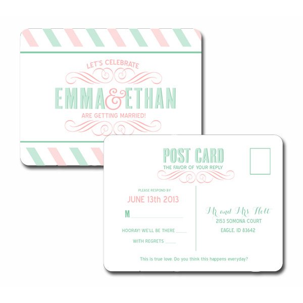 This Rsvp insert postcard is just what you need to get your guest count done in style. These postcards will get noticed! They are coordinated to your event, your script preference, and your colors. They are A2 (3.5" x 5") sized.