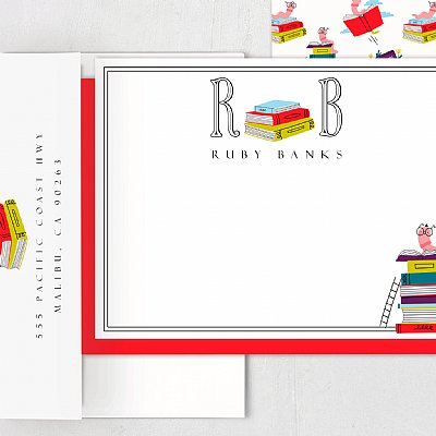 Monogram Bookworm Stationery Set