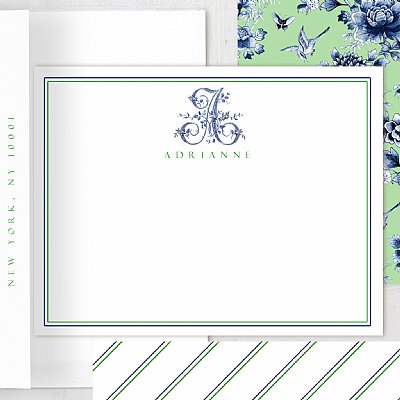 French Monogram Stationery Set (Blue & Green)