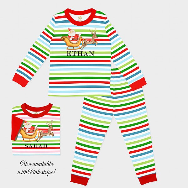 Santa Stripe (Blue) Children's Long Sleeve PJ Set