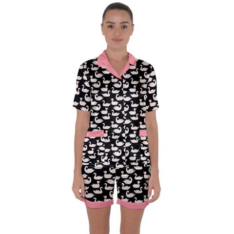Satin PJ Short Set in Black Swan