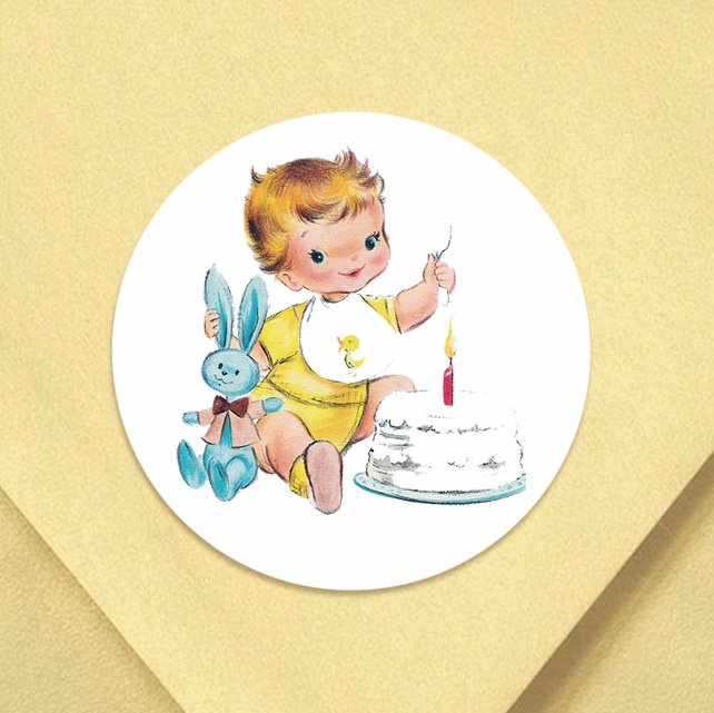 Vintage First Birthday Boy (Fair Tone) Circle Stickers