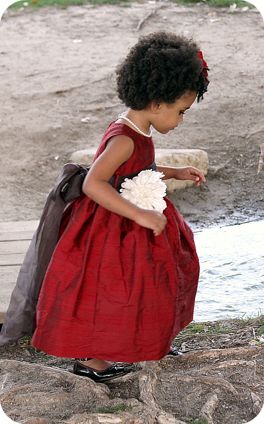 I, on the other hand, borderlined struggled. Mr. Lewis missed his plane and got there right when the reception began leaving me with three little ones and 20 minutes to get ready. And yes, that is a plastic grocery bag around my waist being used as a belt to hold the robe on. What can I say? I jumped out the shower, couldn’t find the robe’s belt (why don’t they sew those things on?), and a bride’s hair needed me. End of story.
