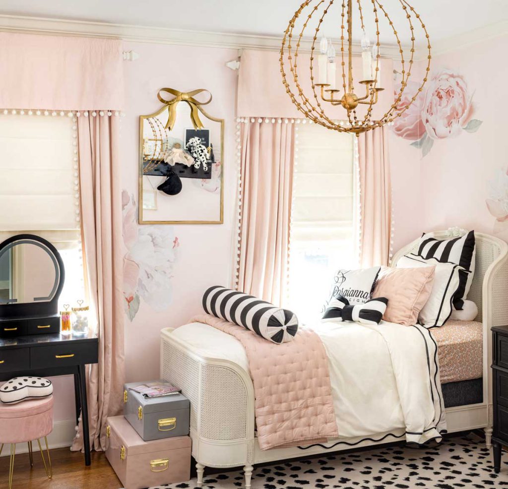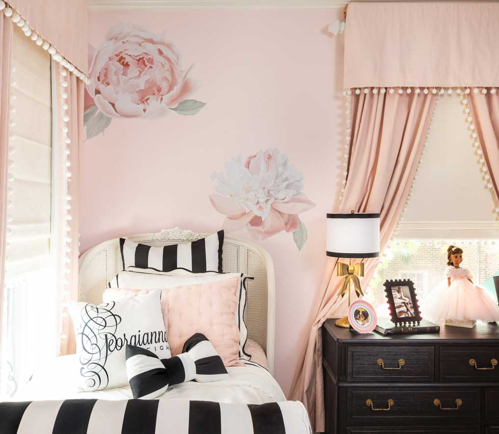 Since this show we have changed this room drastically as the girls have grown and rooms grow with children It is now light blue and white. 🙂 But here it is before. And I loved it.