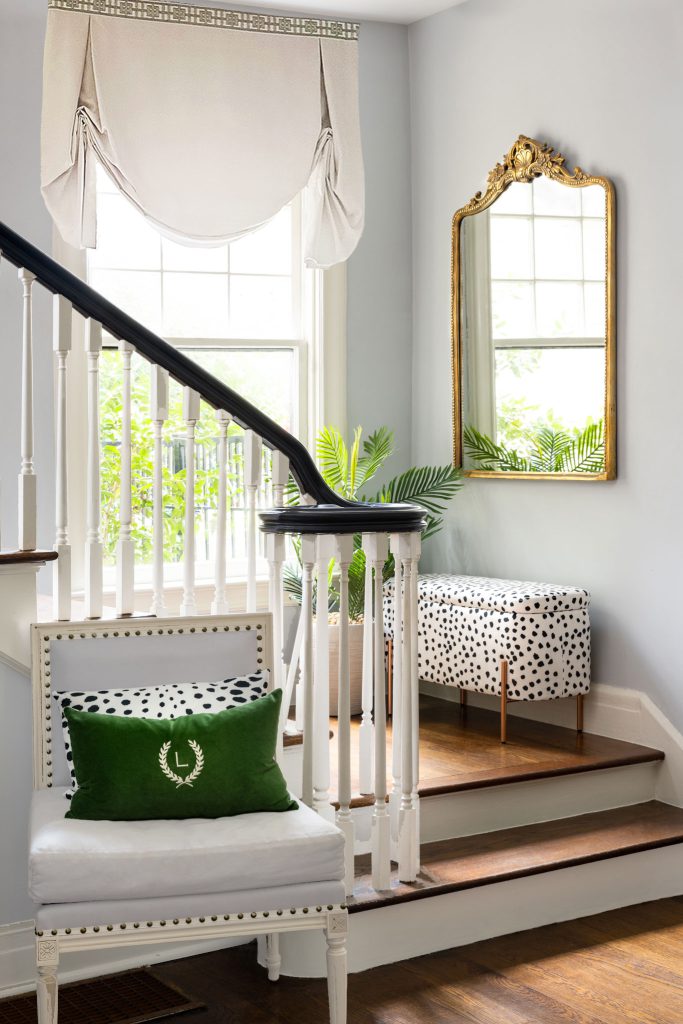 I designed the window treatments going up the staircase. They weren’t ready in time for the home show. Que Sera, Sera. I am obsessed with Dalmatian print right now. I would own a Dalmatian if I were not obsessed with my own dogs.