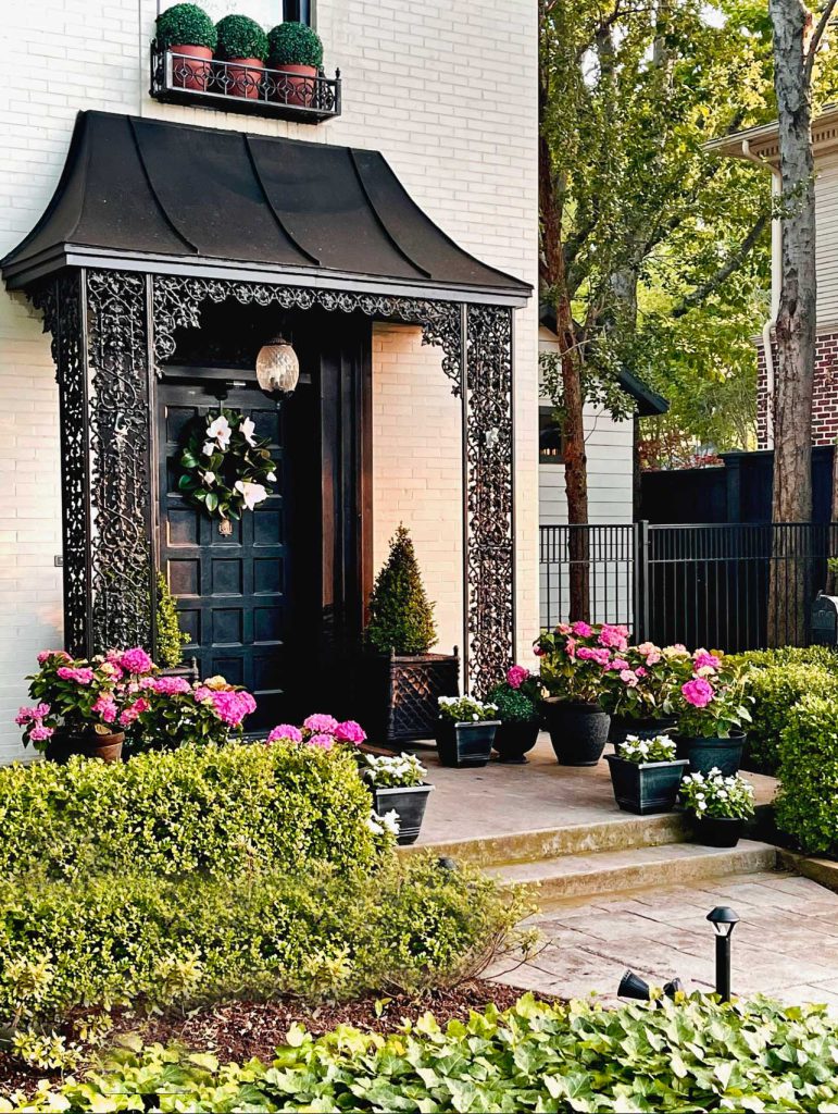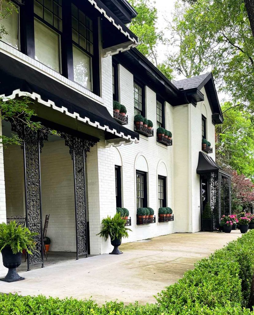 Georgian styled homes are also known for metal piqued awnings at entry ways, and fireplaces. The Awning Portico at the front of the house is original as well as it’s black ironwork. The window boxes were added by me in 2017 and were custom ordered from London to match the home. I researched a lot before purchasing them to what Georgian window boxes should look like. Years later when I found out that the original sketch of the home had window boxes similar to the ones I chose I was thrilled! A) I felt my research had paid off and b) I was happy that perhaps the original designers of the home would have approved of my choice. You worry so much when you add to the exterior of a historic home. I realize that this home isn’t that old in comparison to those in Europe and other parts of the world, but for me it is the first home that I have done restorative work on and so I have tried to first and foremost do no harm and second restore responsibly – which at times can be difficult when you are on a budget. You can see below the original 1920s poster featuring the home with window boxes! It is the home in the top left corner.