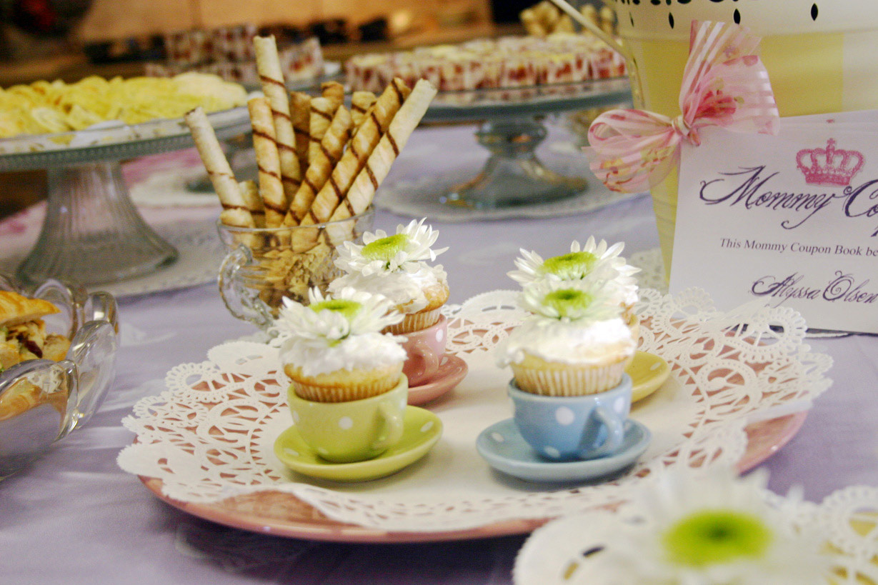 3. Tiny finger foods. This is a great opportunity to hit your local Costco or Sam’s Club. Mini eclairs, tea sandwhiches, scones, and bite-sized cookies are all perfect for a tea party. Oh, and don’t forget cream puffs! Women who are pregnant love cream puffs.