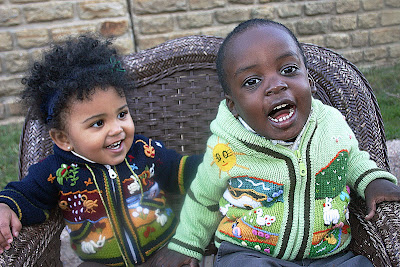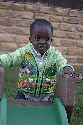 When I took my mom to Austria and Hungary with me a couple years back, she almost started hyperventilating when she found these tiny handknit sweaters! She bought them on the spot – even though she had a total of ZERO grandchildren at the time. Mom must of had her Grand-motherly intution on super-high, because now (with strikingly good timing for the fall season) they fit perfectly on both my fast-growing munchkins! I can’t believe it. They are so cute!! So here are some photos, Mom. Once again, excellent purchase! They were worth every penny, you didn’t try bargaining for!