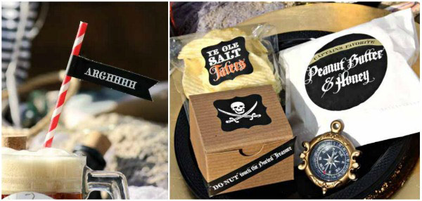 5) For placemats, I created 11X17 antiqued maps for each setting. The kids then used these to find the hidden treasure! I will be offering these in the shop shortly – as well as the other paper goods! I “forced” Mr. Lewis to antique all the signs, placemats, and posters. I put “forced” in quotations because is it just me or does it take very little coaxing for husband’s to do any honey-do list items that entail a blow torch?