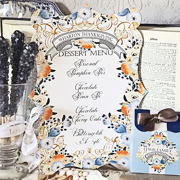 One Large Die-cut Custom Dessert Menu. The menu measures 7.5"w x 10"h and is personalized for your event. Printed on heavy 130lb. cardstock.