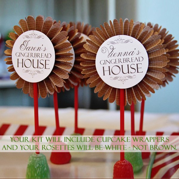 Set of 12 cupcake rosette toppers and 12 cupcake wrappers. Loraleeâ€Ã¢â€žÂ¢s cupcake kit will take your dessert to the next level! Each cupcake wrapper measures 2 3/4"w x 1 3/8"h and fit around standard cupcakes. Each cupcake topper measures 2.25" around approximately.
